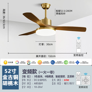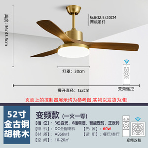 52寸-金古铜胡桃木-吊杆3叶【60W】
