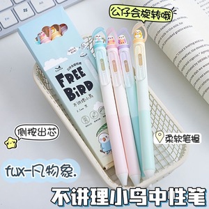 凡物象5016不讲理小鸟侧按出芯可爱卡通顺滑0.5学生刷题签字黑笔