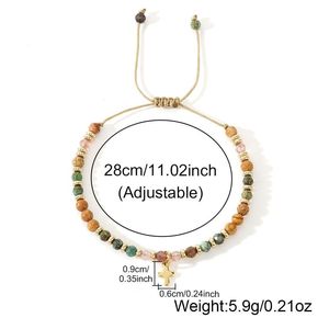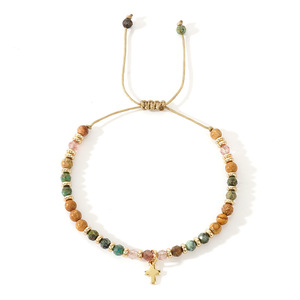彩色天然石手链松石金隔片合金吊坠蜡线编织手链十字架半宝石手链
