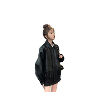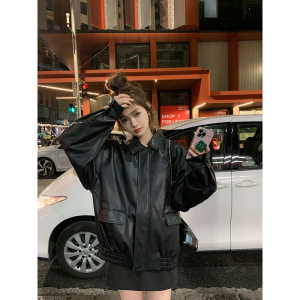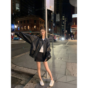 大码黑色pu皮衣新款2025爆款女春秋机车服美式外套小众皮夹克上衣