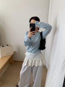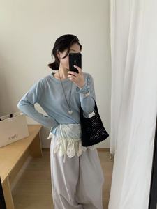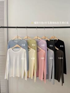 韩系早秋薄款长袖针织衫6羊毛圆领基础款百搭叠穿纯色打底衫内搭
