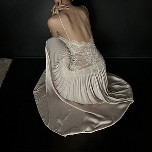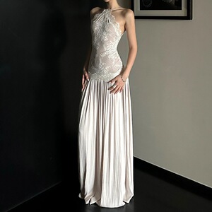 女款夏蕾丝拼接吊带连衣裙女夏气质名媛高级感收腰露背无袖长裙潮