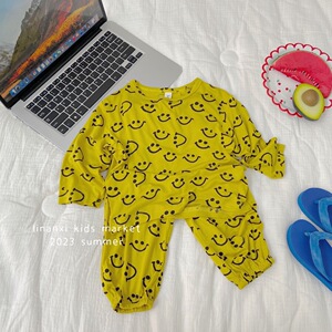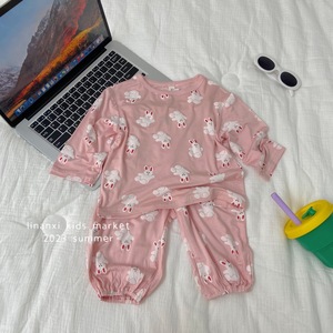 男女童韩版卡通亲肤家居服儿童面膜睡衣夏季宝宝长袖长裤空调服