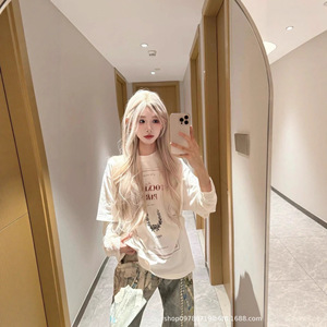 【不支持退货】马缌纯同款AC2徽标做旧字母印花假两件网纱长袖