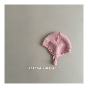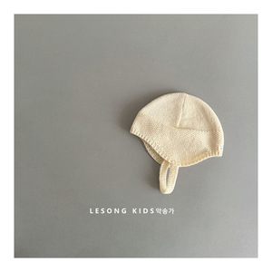ins韩国婴幼儿宝宝纯色针织瓜皮帽绑带保暖护耳毛线帽婴儿套头帽