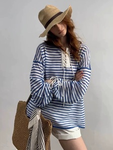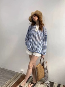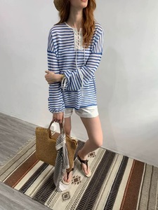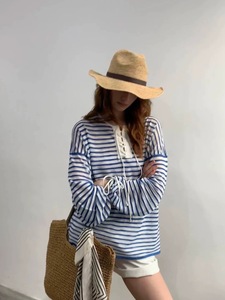 2025SS夏季度假法式条纹针织防晒透气长袖T恤上衣