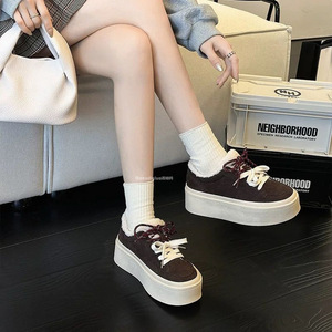 磨砂真皮双色系带板鞋女2025春秋新款厚底饼干鞋复古松糕鞋