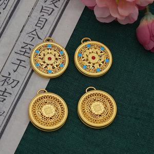 仿金珐琅大吉福禄圆满牌吊坠合金滴油饰品配件DIY匙扣挂饰开运