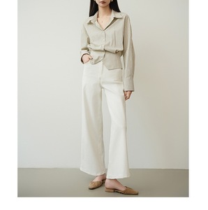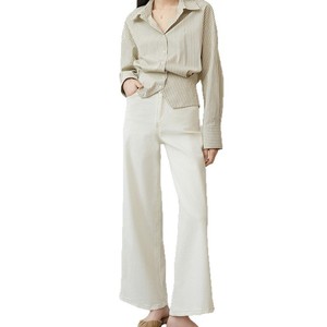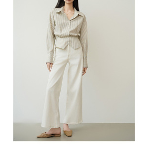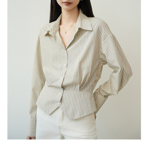 2025秋季新款收腰条纹衬衫女士职业通勤衬衣开叉设计感上衣