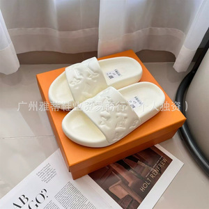 外贸L家新款字母压纹拖鞋男2025春夏平底头层牛皮百搭一字拖鞋女