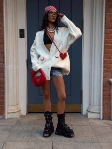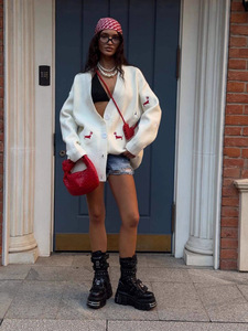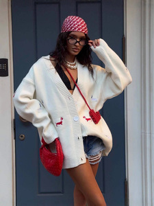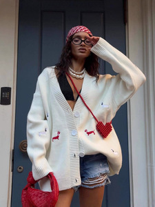 亚马逊跨境小众深V领宽松开衫外套2025秋冬新款慵懒风垂坠感毛衣