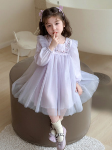 女童秋季连衣裙长袖2025新款洋气儿童公主裙春秋款女宝宝刺绣纱裙