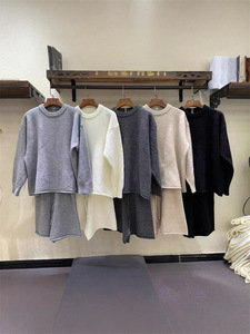 博主推荐爆款批发初秋宽松慵懒风圆领毛衣高腰短裤针织套装女韩系