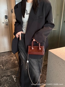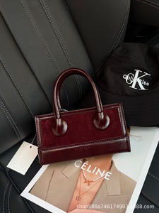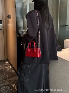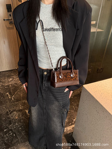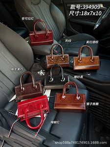 磨砂豹纹盒子包红色包包女时尚精致手拎小包麂皮绒链条斜挎手机包