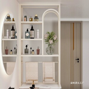 现代简约奶油风卫生间洗漱台干湿区卧室置物架半墙屏风隔断柜旭友