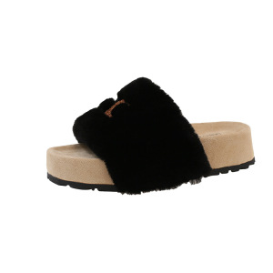 2025秋冬新款韩版时尚一字毛毛拖鞋外贸毛绒拖鞋女露趾厚底毛拖鞋
