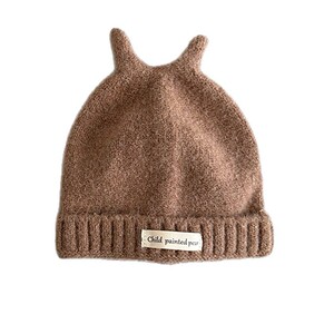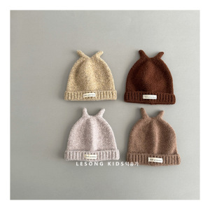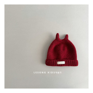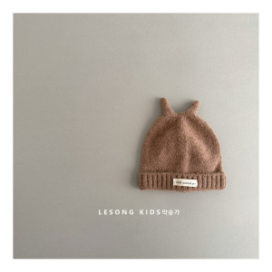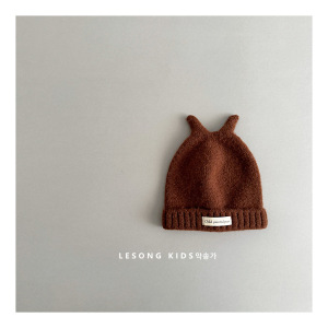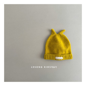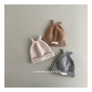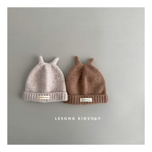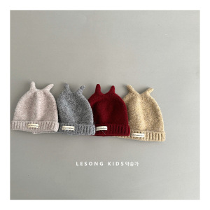 小童毛线帽秋冬新款洋气小标套头帽子可爱小触角韩版宝宝针织帽潮
