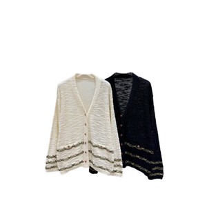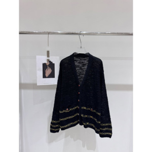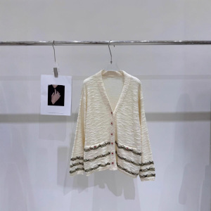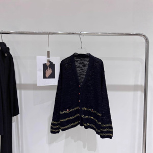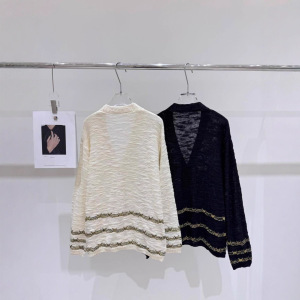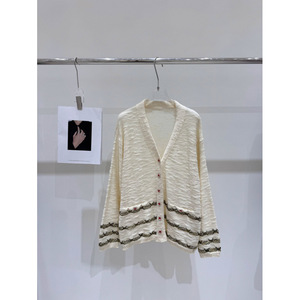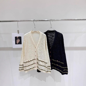 25年早秋新款香家手工坊系列重工金线镶边针织长袖单排扣开衫毛衣
