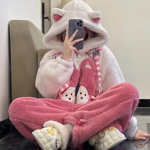 派大星海绵宝宝毛绒睡袍珊瑚绒秋冬闺蜜连体衣家居服套装闺蜜睡袍