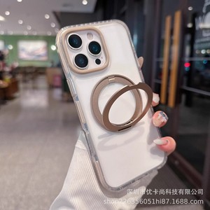 适用苹果17promax透明手机壳360旋转磁吸支架 iPhone16全包保护套
