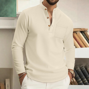 亚马逊欧美男装长袖圆领t恤 男士打底衫外贸男式体恤亨利领上衣