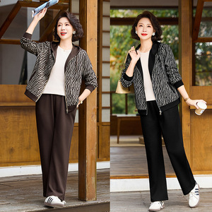 气质遮肉显瘦2025秋季新款中老年女装大码运动套装妈妈装两件套潮