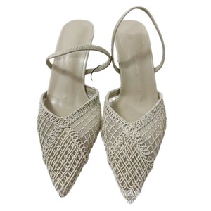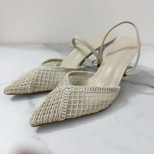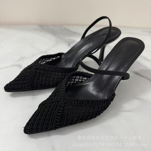 ZA刺绣舒适法式镂空编织包头凉鞋女粗跟2025夏新款一字扣高跟凉拖