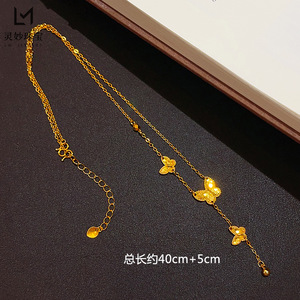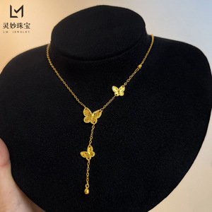 新中式复古沙金龙鳞三只蝴蝶流苏吊坠项链碎冰冰福蝶锁骨链送女友
