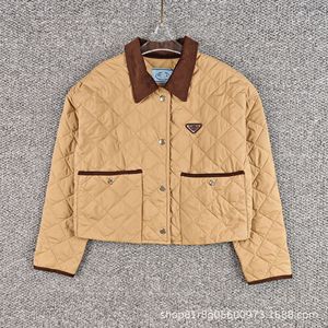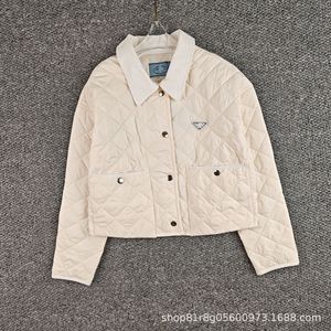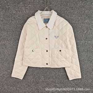 南油高版本秋季新款P家金属三角标菱格POLO领短款棉服外套