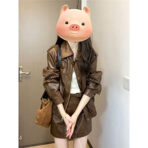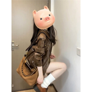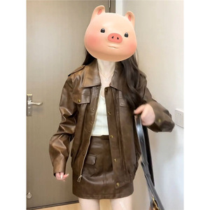 棕色高级感皮衣外套女春秋新款韩版宽松显瘦气质百搭机车皮夹克潮