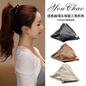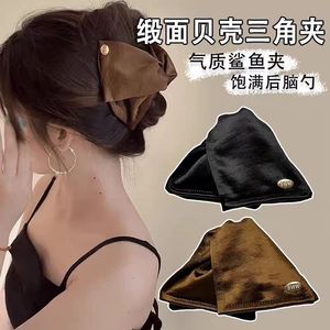 法式简约布艺半扎发抓夹三角发夹后脑勺气质鲨鱼夹发饰小香风设计