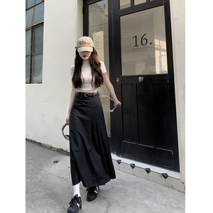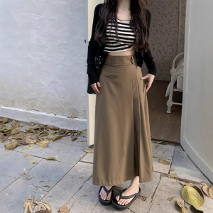 秋季新款西装半身裙25时尚个性显瘦宽松高腰法式A字中长款半身裙