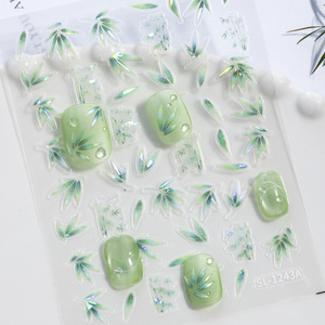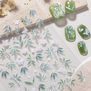国风斑斓竹影美甲贴纸5D浮雕贝壳光蝴蝶竹子指甲贴纸饰品 SL款
