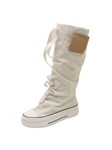 靴子女夏2025新款欧洲站小众帆布堆堆靴厚底高级感工装西部牛仔靴