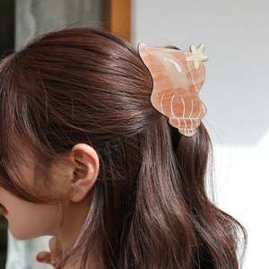 柏菲雅新款醋酸抓夹甜美可爱海螺发夹大号后脑勺盘发鲨鱼夹发饰女