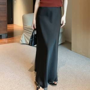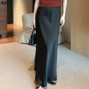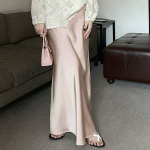 大码女装胖新中式松紧腰显瘦中长裙缎面丝滑半身裙鱼尾字长裙