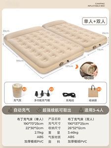 香槟棕【双人加宽】加厚25CM【充气/抽气-两用蓄电泵/双人睡袋套餐】送收纳袋