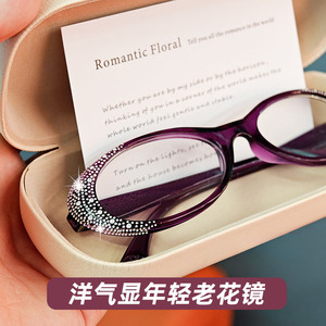 防蓝光老花镜女时尚闪亮舒适中老年高清老花眼镜洋气显年轻复古型