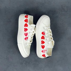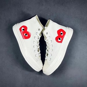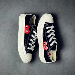 纯原1970S川久保玲爱心奶茶经典黑高帮女款软蓝底情侣帆布鞋