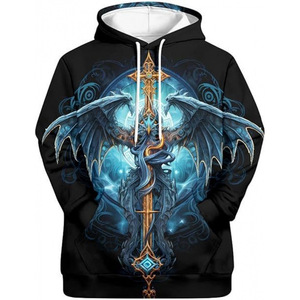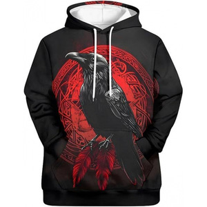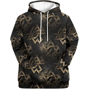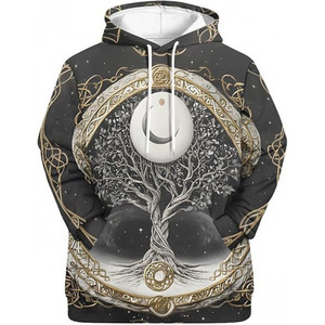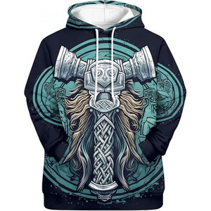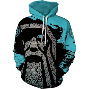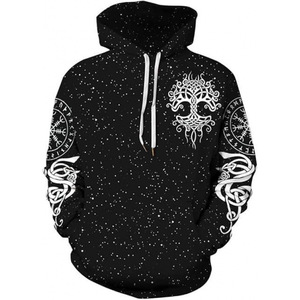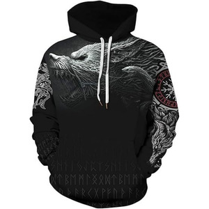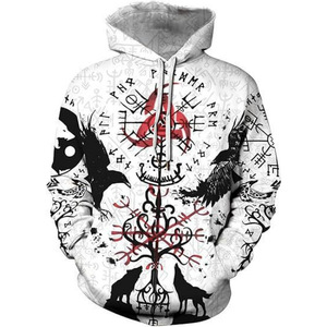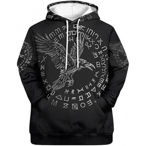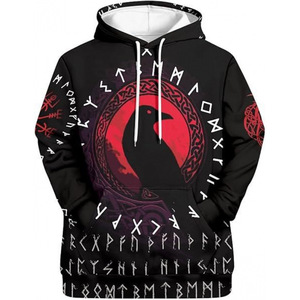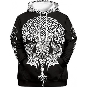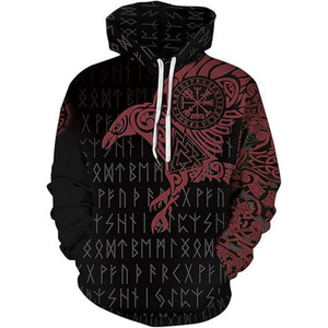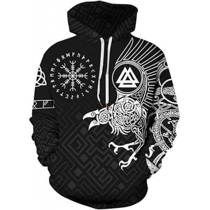 2025跨境男式维京图腾3D印花连帽衫长袖套头运动衫欧美嘻哈潮流