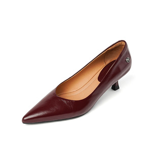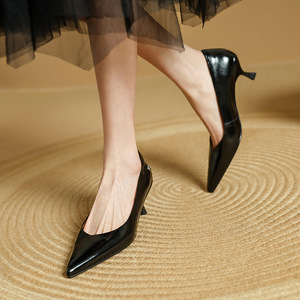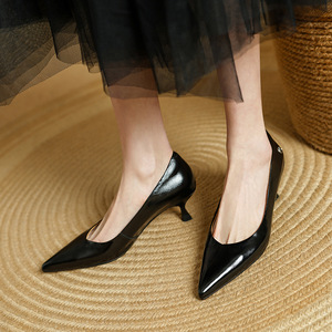 职场女神范优雅干练头层牛皮工作鞋2025秋细中跟尖头真皮浅口单鞋
