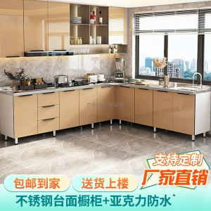 厨房橱柜灶台柜一体家用储物柜农村经济型厨房收纳柜子简易碗柜