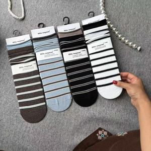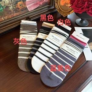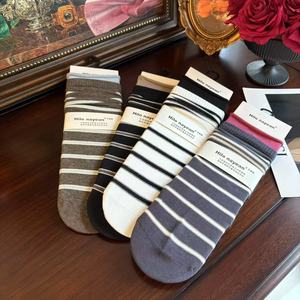 南业 nanye 2025年新品复古条纹简约韩系拼色淑女温柔条纹袜子