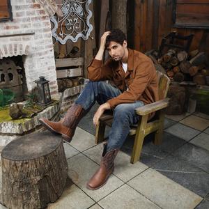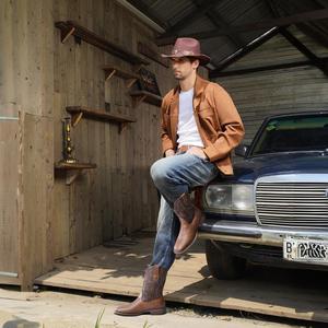 2025新款跨境代发男式经典西部方头挽扣牛仔靴