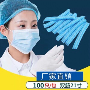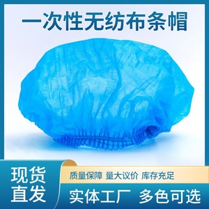 现货100只一次性帽子条帽圆帽双筋条形帽无纺布头套蘑菇帽浴帽