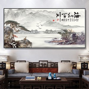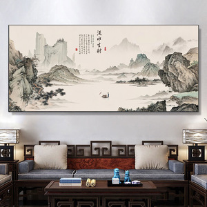 聚宝盆画国画办公室字画中式装饰风景山水客厅挂画沙发背景墙壁画
