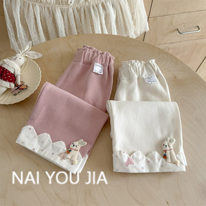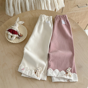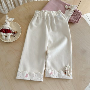 奶油裤子秋装2025新款洋气宝宝休闲长裤春秋款童装儿童公主直筒裤