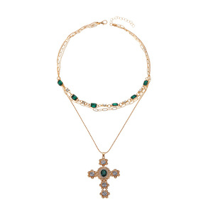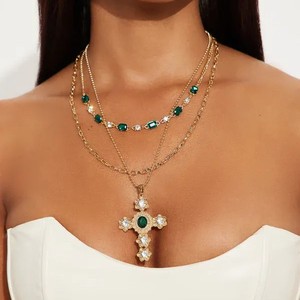镶钻十字架项链批发欧美跨境复古小众轻奢高级感叠戴配饰女锁骨链