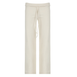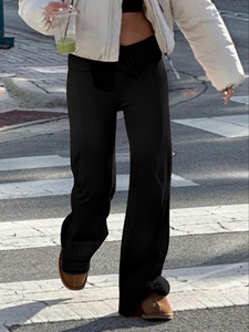 欧美度假风设计感翻腰纯色针织裤女跨境低腰白色宽松直筒休闲裤