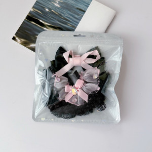(挂袋装)粉黑系蕾丝裙迷你号+别针蝴蝶结
